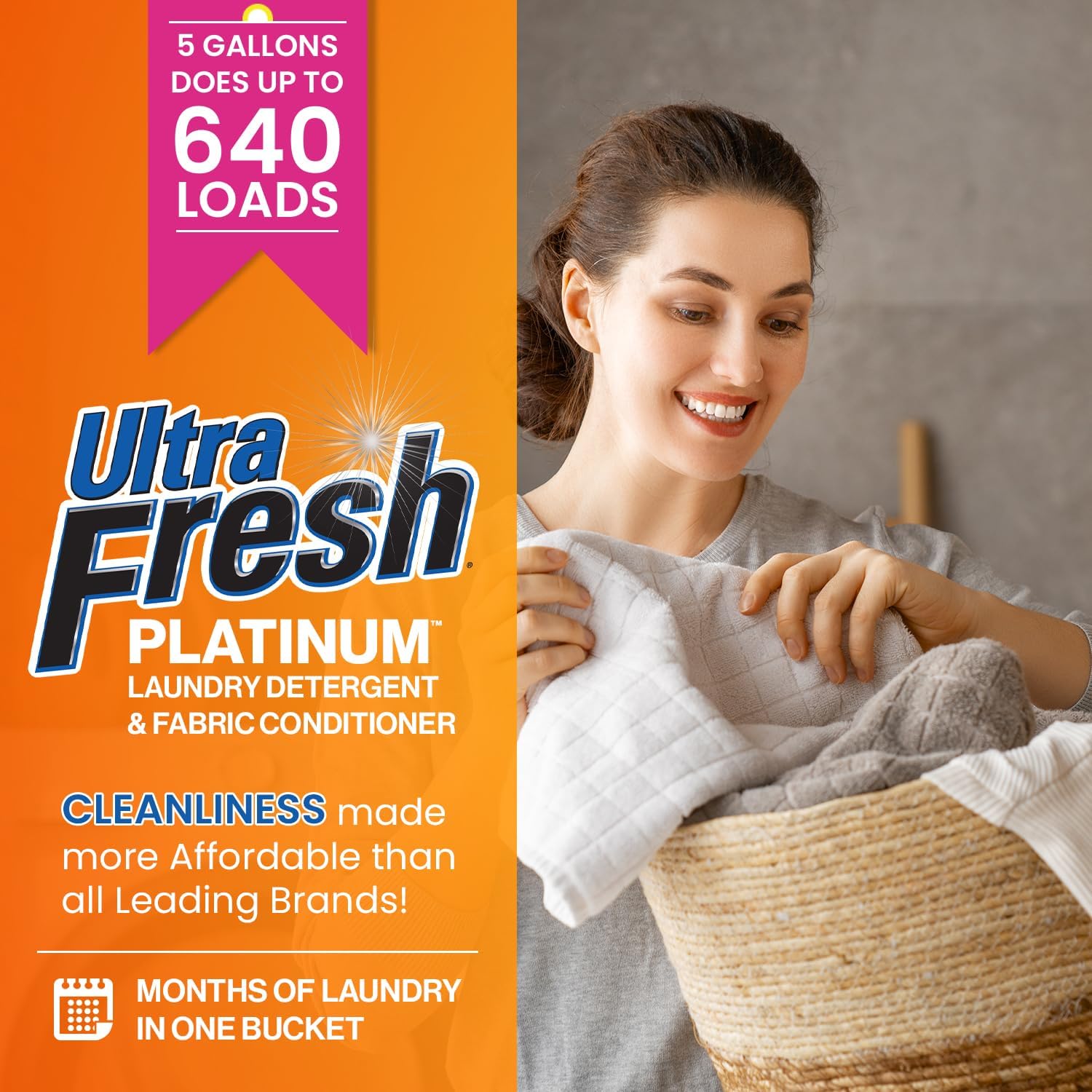 Ultra Fresh 5 Gallon Liquid Laundry Detergent Washing Soap with Spring Fresh Fabric Softener for All Machine Types, 6X Platinum, Up to 640 Loads