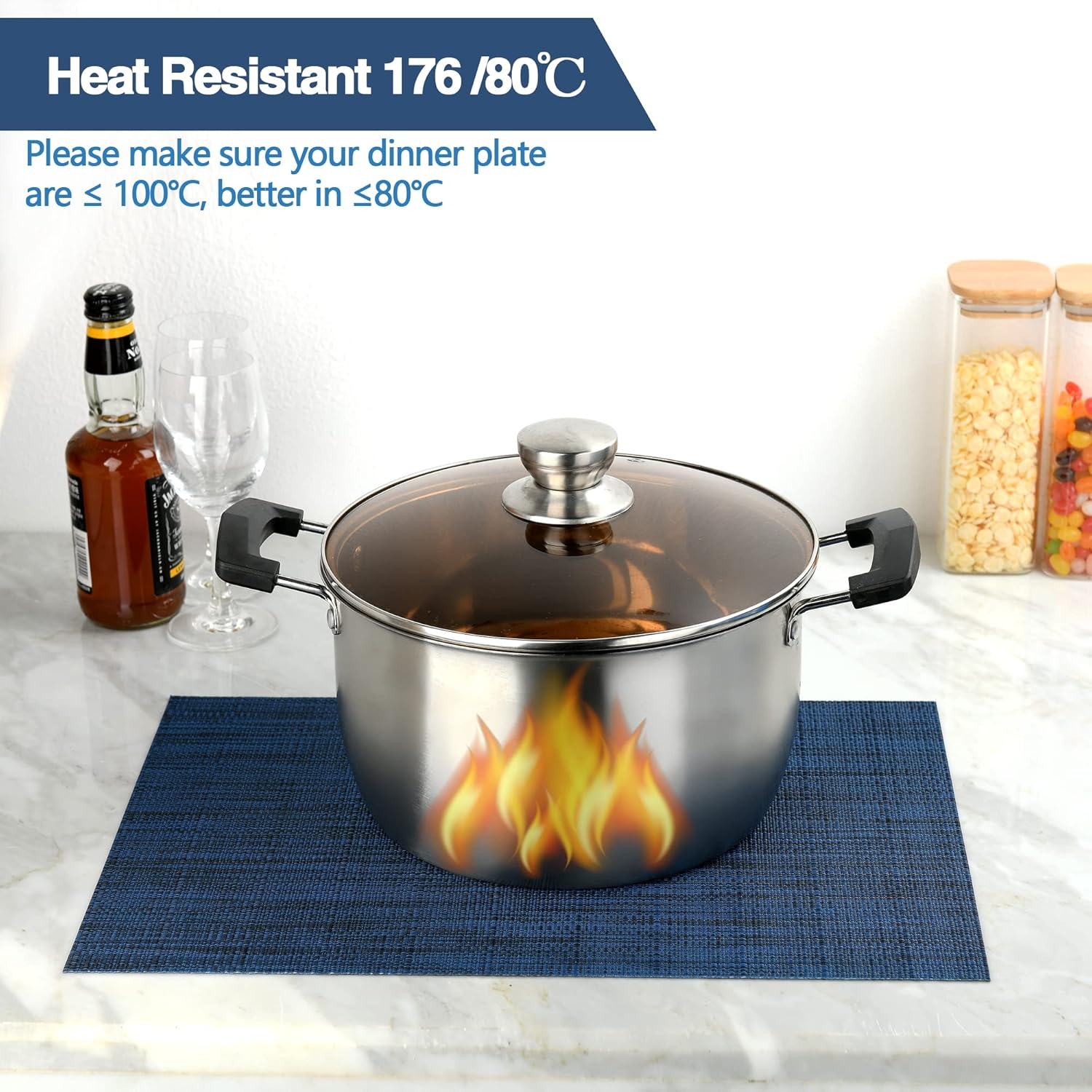 - Heat Resistant: Please make sure your dinner plate are ≤ 100℃, better in ≤80℃. It can prevent the table from slipping and scalding the countertop. These beautiful stylish vinyl place mats to add more fun to your dining table