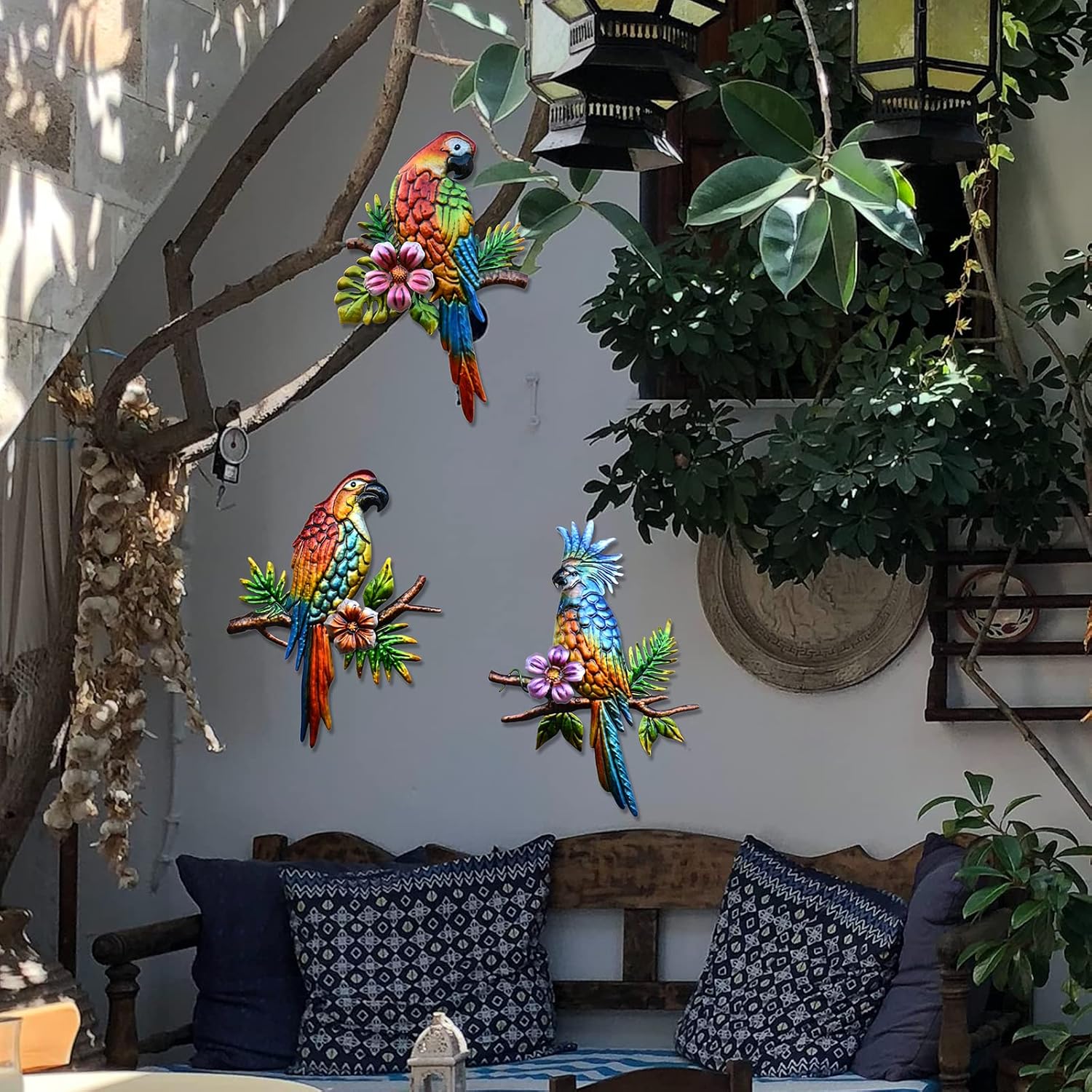 • 【Wide Application】This Outdoor Tropical Decor Is Ideal For Indoor And Outdoor Decoration, Suitable For Bedroom, Living Room, Garden, Backyard, Balcony, Patio, Metal Porch Or Outdoor Fence Decoration. 3 Adorable Parrots Add Color To Your Living Space.