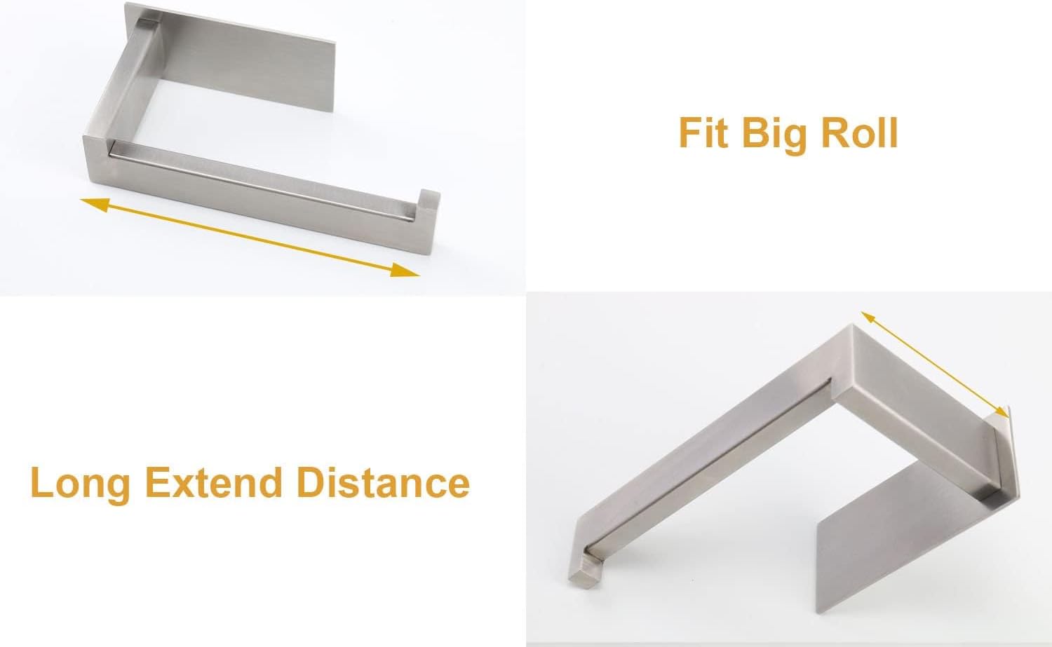 - DURABILITY & RUSTPROOF -- Toilet paper holder construct of 304 stainless steel. Suitable for moisture bathrooms and fumes kitchens to used. Moreover, it large area adhesive side can bear weight up to 16 LB.
