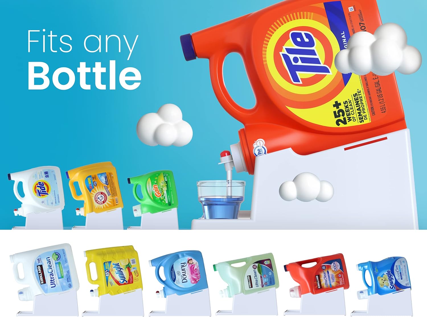 - [Keeps Everything Secure and in Place]: The included adjustable strap locks your detergent in position, transforming this liquid detergent dispenser for laundry room into a rock-solid station. No more sliding bottles or risky falls, just stable, secure storage.