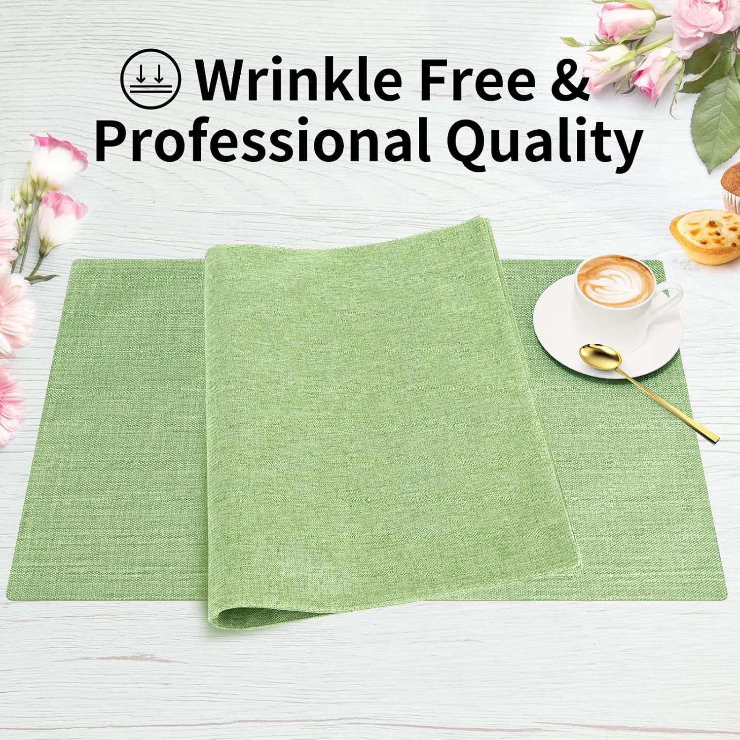 Cloth Placemats, Set of 6 Heat-Resistant Cotton Linen Blend Double Layered Machine Washable Place Mats, Wrinkle Free Thick Fabric Dining Table Mats for Indoors & Outdoors (Grass Green, 6)