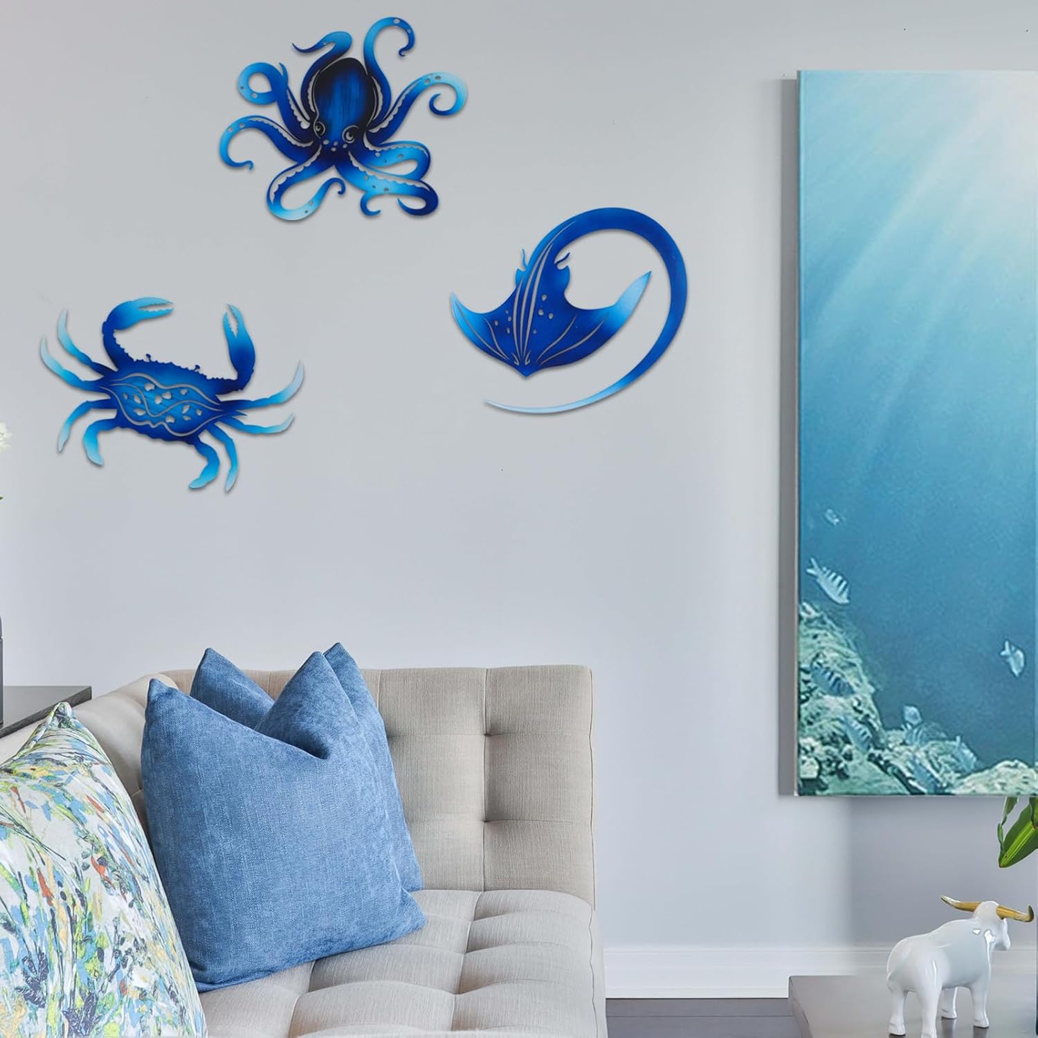 - 【Sea wall decoration】This octopus, manta ray, and crab wall decoration adds a touch of ocean charm to the home environment. The beautiful gradient color design brings you a unique visual experience.