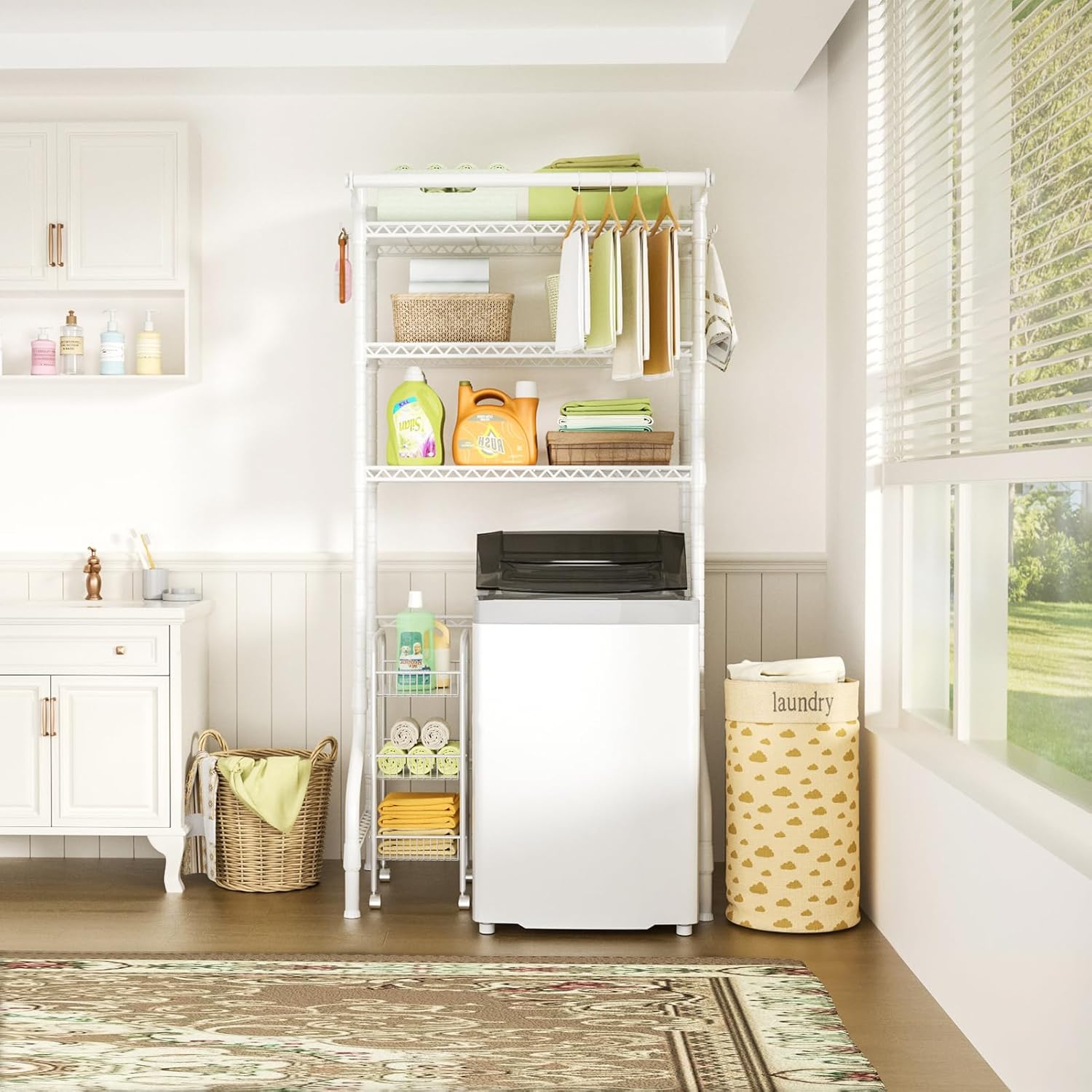 - [Easy to Install]: Following the detailed instruction manual and assembly video can install the laundry room organization quickly. Any issues can contact us at any time