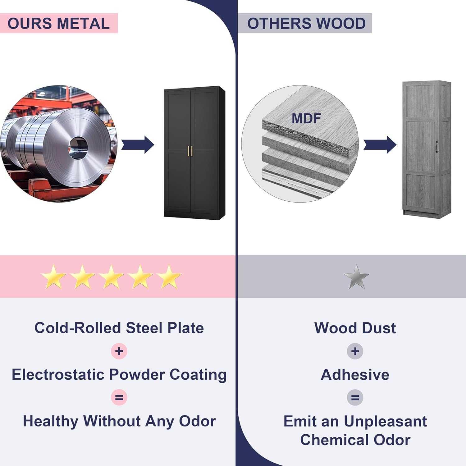 - MATERIAL: The kitchen food storage cabinet is crafted from cold-rolled steel plate(SPCC), ensuring it is sturdy and durable. Steel plates are covered with an environmentally friendly powder coating. Compared to traditional wooden or plastic cabinets, UNICOLY kitchen food storage cabinets are corrosion-resistant, easy to clean, and odourless