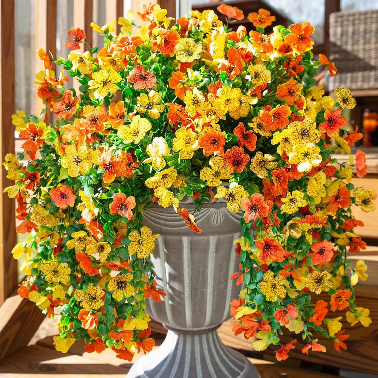 - Real Looking Outdoor Plants: These faux flowers outdoors look just like the real thing, vibrant colors which can add natural beauty to your home all year around. It fits any fall decorating theme. Combine them with other fall home decor for a warm and pleasant atmosphere.