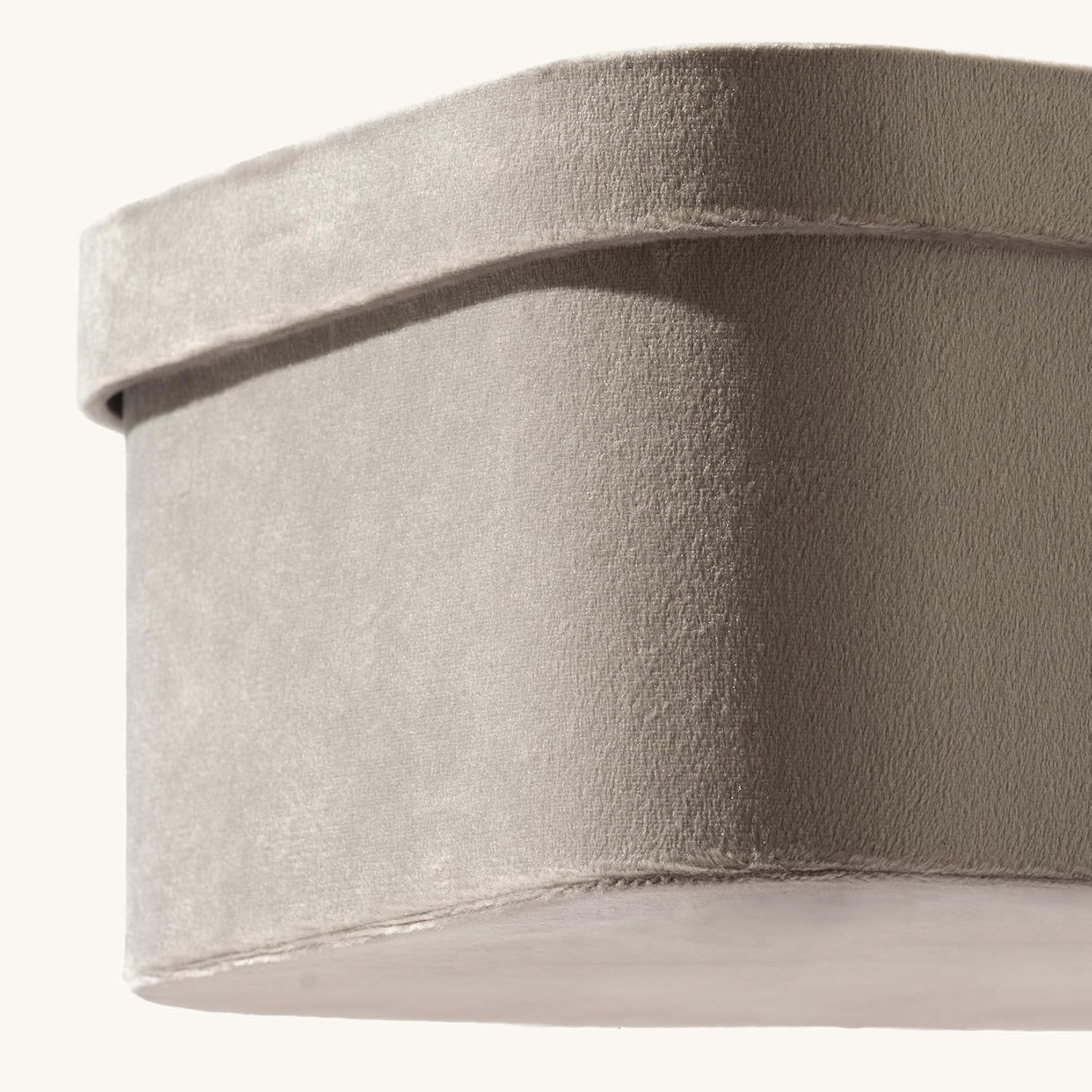 La Jolie Maison Velvet Storage Baskets with Lids, Sturdy Stackable Cardboard Boxes with Decorative Trays, Organizer Bins for Bathroom Bedroom Organizing, Taupe, Set of 3