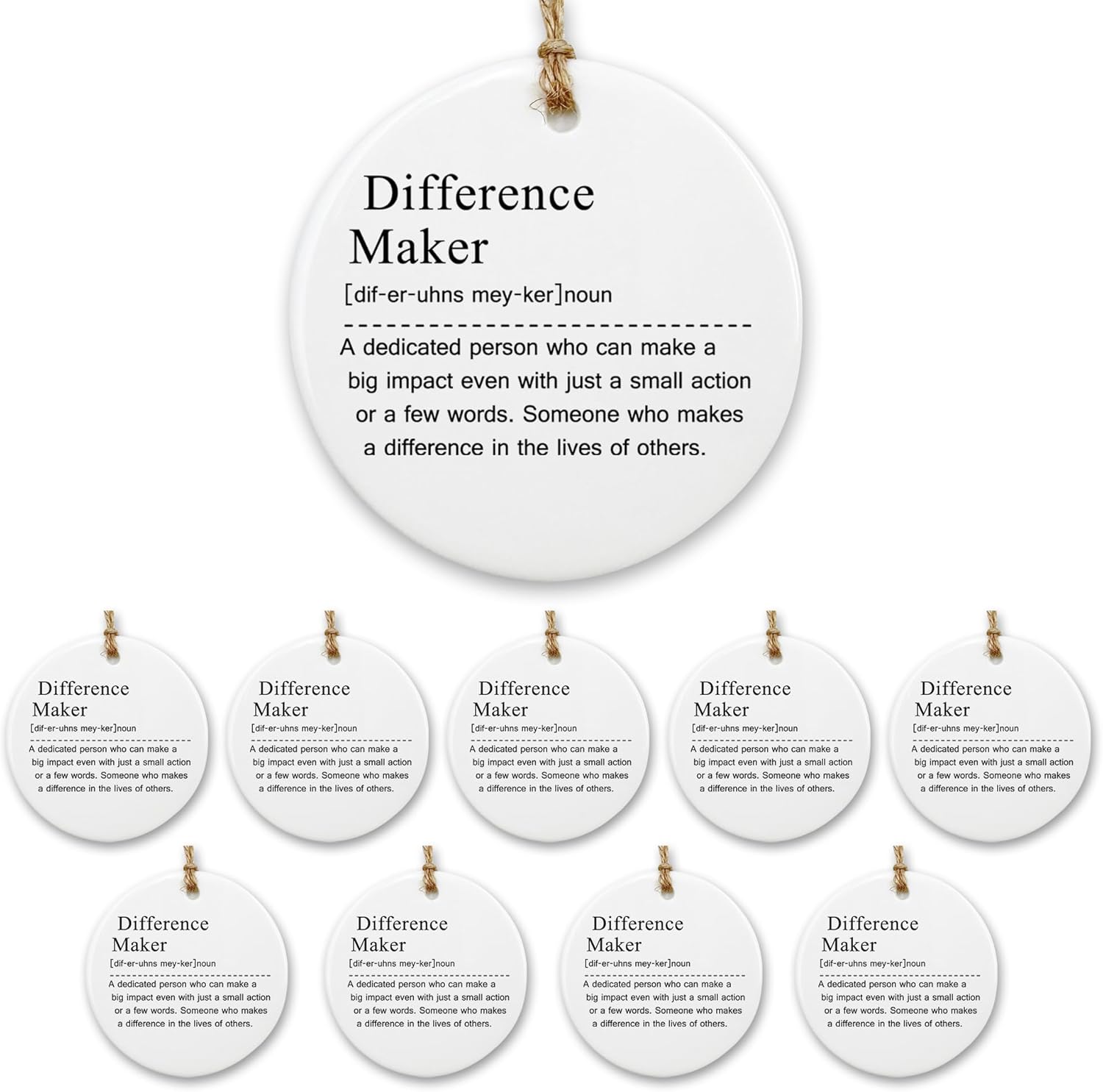 Thank You Gifts for Women Men - 10 Pcs Appreciation Gift for Teacher Boss Leader Coworker New Job Gifts Difference Maker Definition Decorative Ceramic Ornament Set