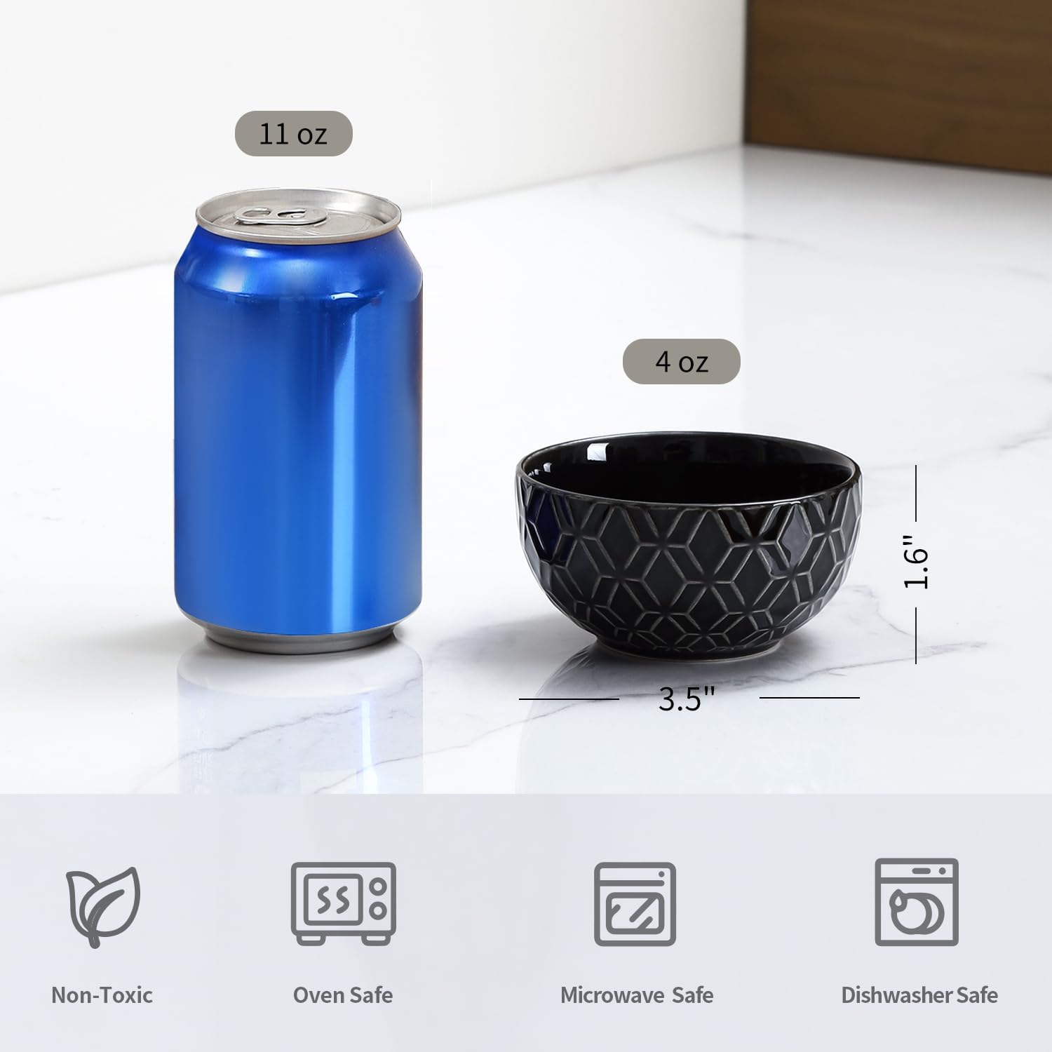 - VERSATILE SMALL DESSERT BOWLS: These mini bowls are 3.5 inches in diameter and 4 oz of normal capacity, which is the perfect size to serve dipping sauces, yogurt, snack, side dishes, condiments, meal prepping and any food you like. It is also great to portion size control, suitable for adults and children