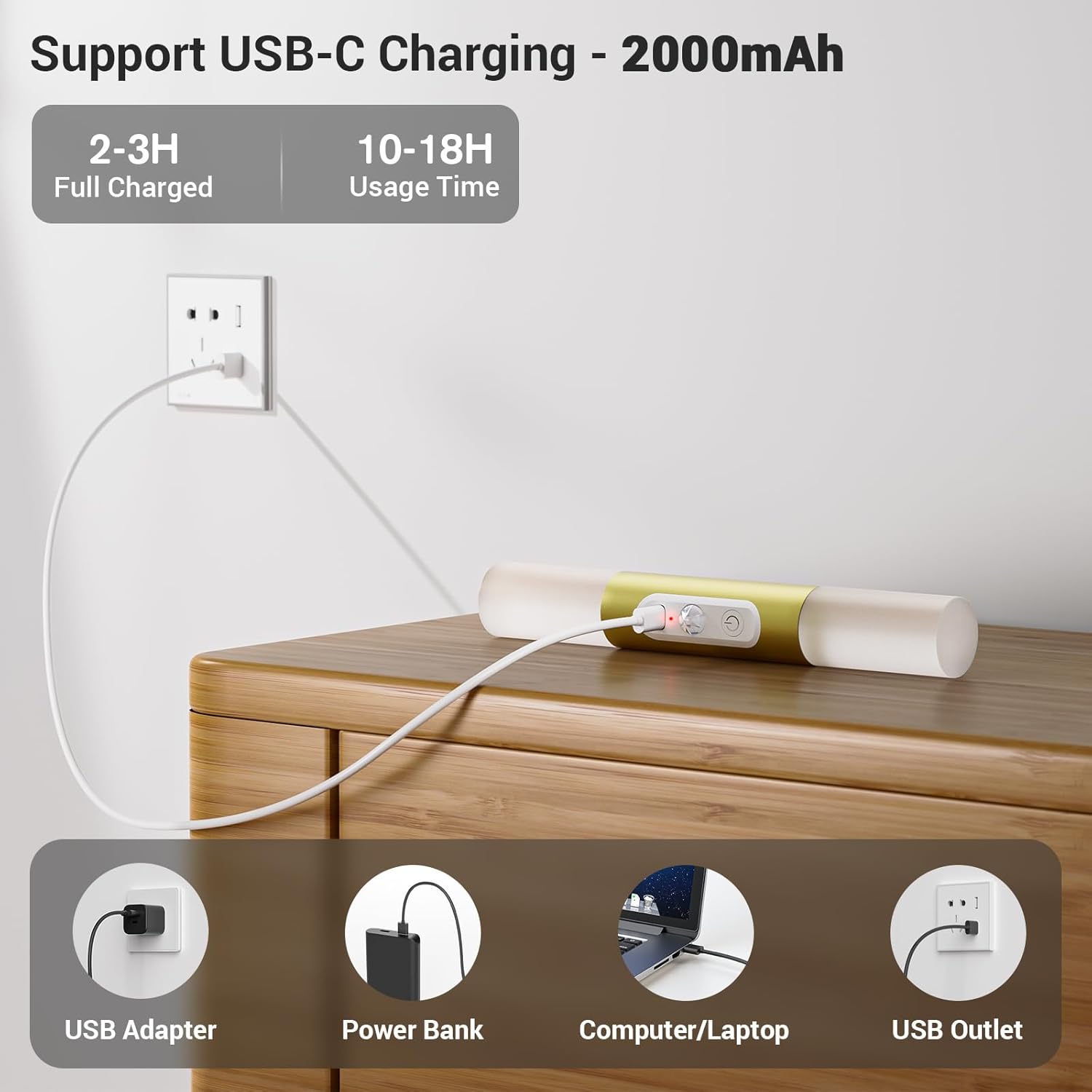 - Easy & Fast Recharge: Wall light features built-in 2000mAh large capacity battery for long-lasting use. Only takes 2 to 3 hours for a full charge with the included USB-C charging cable. Compatible with usb adapter or outlet, power bank, computer or laptop