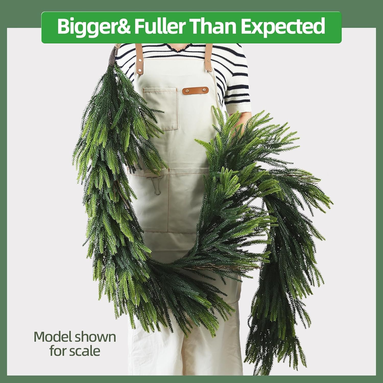 - 【Dense & Realistic Design】Each garland is handcrafted with densely packed pine branches, providing a fuller appearance than standard garlands. The real-touch texture and natural green tones make it a standout green garland for decoration, ready for your DIY embellishments.